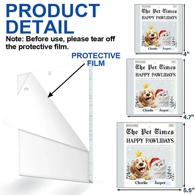 The Pet Times Happy Pawlidays Dog Cat - Personalized Custom Shaped Acrylic Ornament