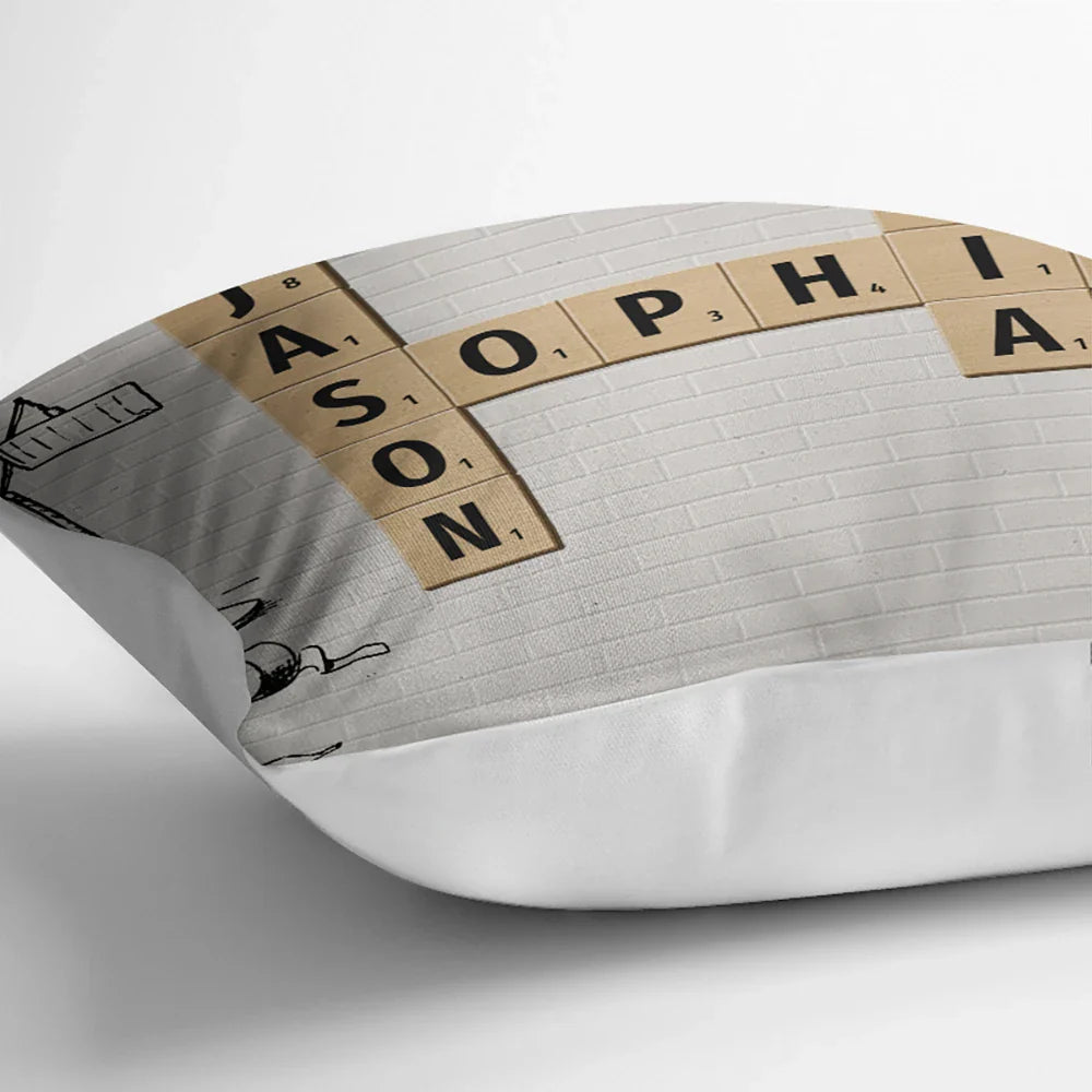 Family Cartoon Crossword Scrabble - Personalized Pillow