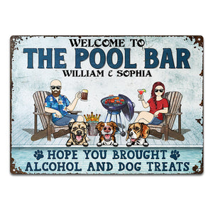 Welcome To The Poolside Hope You Brought Alcohol And Dog Treats Couple Dog Lovers - Backyard Sign - Personalized Custom Classic Metal Signs