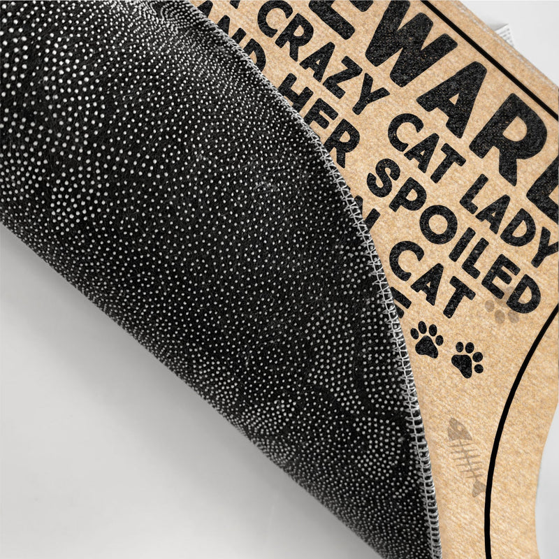 Beware A Crazy Cat Lady & Her Spoiled Rotten Cats Live Here Funny Cartoon Cat - Gift For Cat Lovers - Personalized Doormat