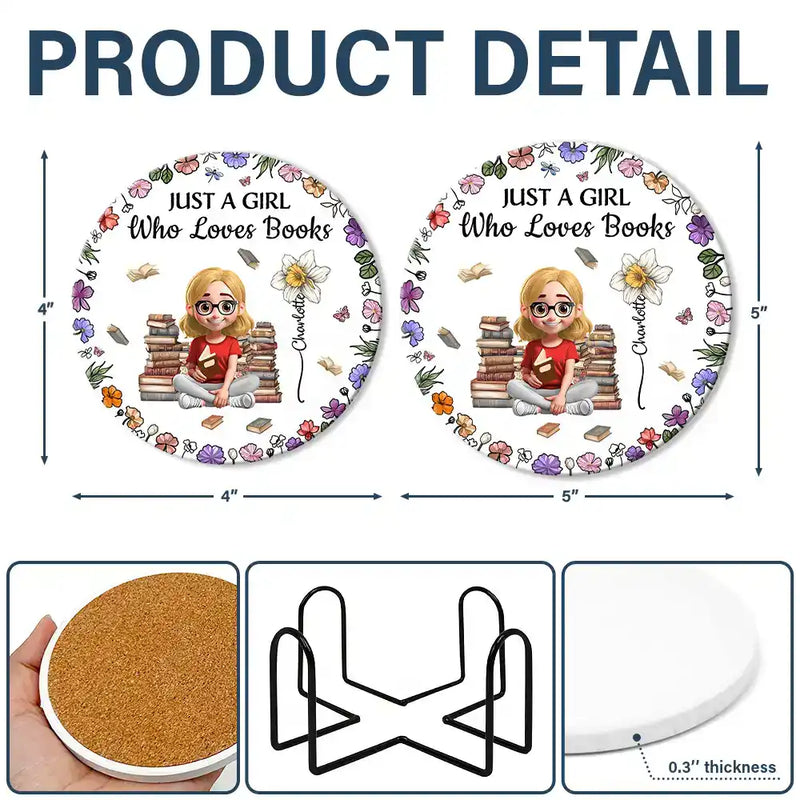 Just A Girl Who Loves Books Birth Flower - Personalized Ceramic Coaster