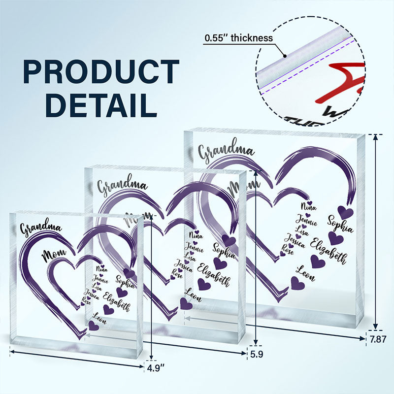 Mom's Grandma's Sweethearts - Gift For Mother, Grandmother - Personalized Square Shaped Acrylic Plaque