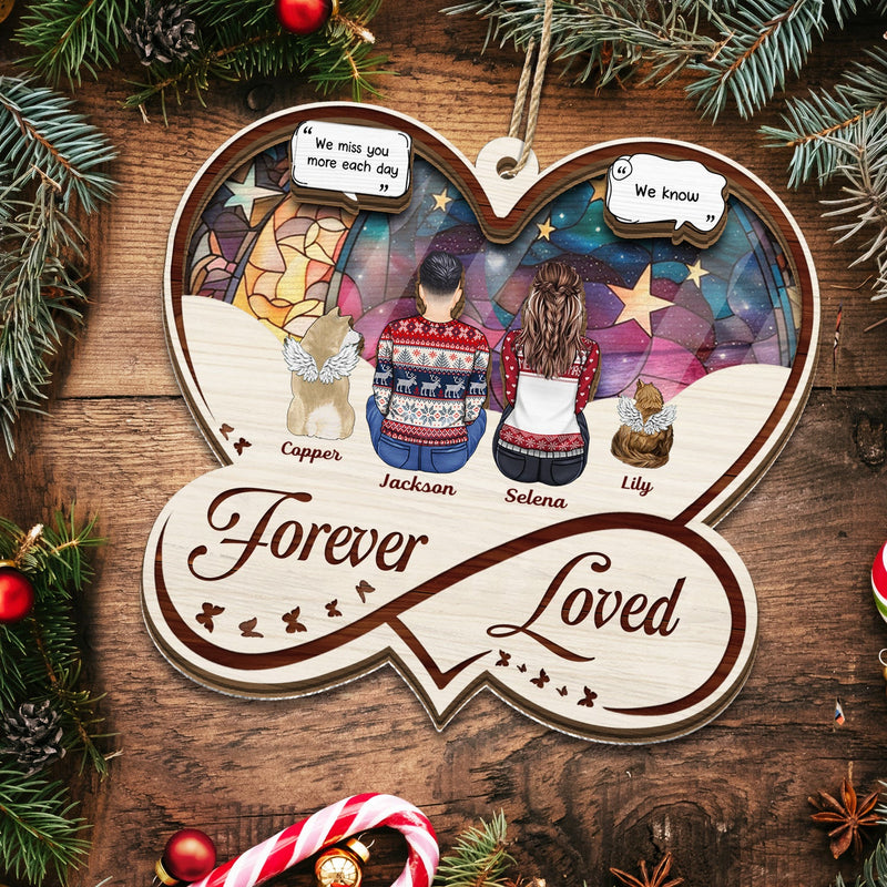 Forever Loved - Christmas Memorial Gift For Pet Lovers, Dog Mom, Dog Dad, Cat Mom, Cat Dad - Personalized Suncatcher Ornament