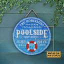 Personalized Swimming Pool Jump In Custom Wood Circle Sign