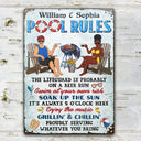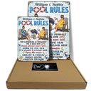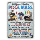 Pool Rules Swim At Your Own Risk Grilling Couple Husband Wife - Backyard Sign - Personalized Custom Classic Metal Signs