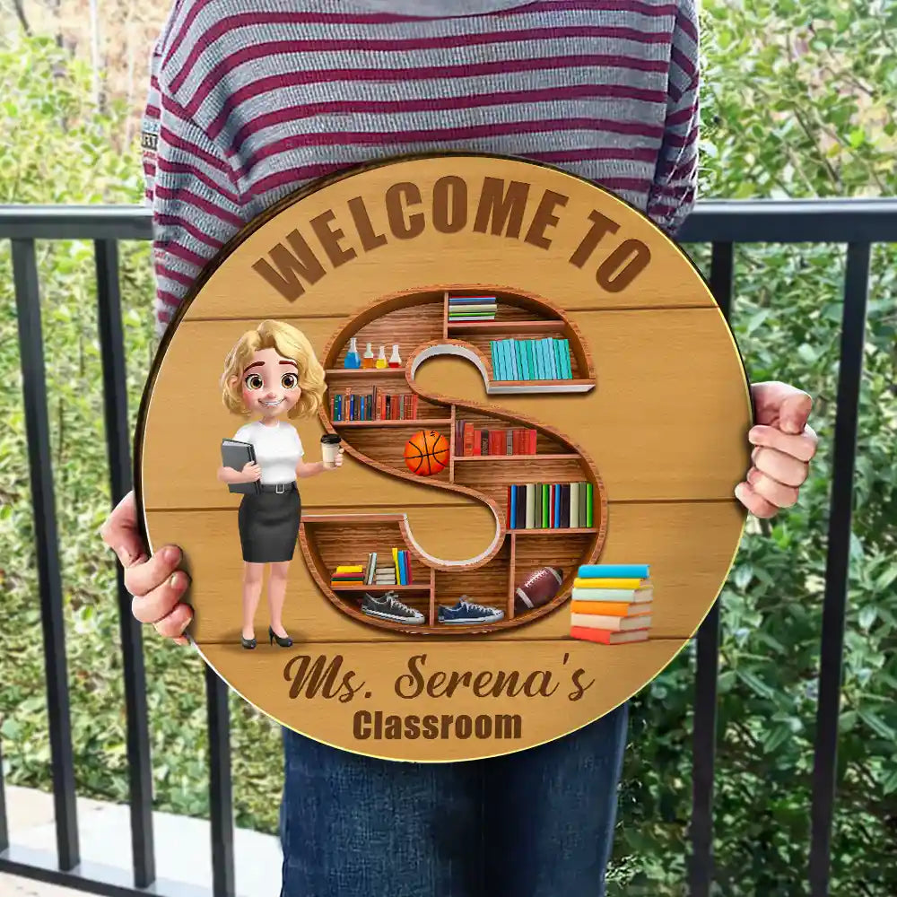 Expertly crafted from premium wood, this sign showcases a playful alphabet bookshelf design shaped into a letter of your choice. Personalized with the teacher's name, it becomes a heartfelt tribute to their dedication and care.