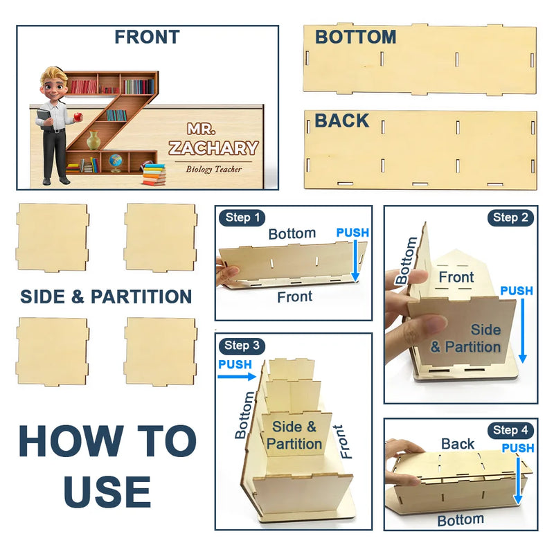 Teacher Alphabet Bookshelf Letter - Personalized Wooden Pen Pencil Holder