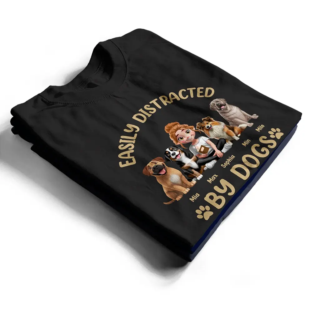 Easily Distracted By Dogs & Books - Personalized T Shirt