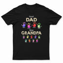First Dad Now Grandpa Handprints - Gift For Father, Grandfather - Personalized T Shirt