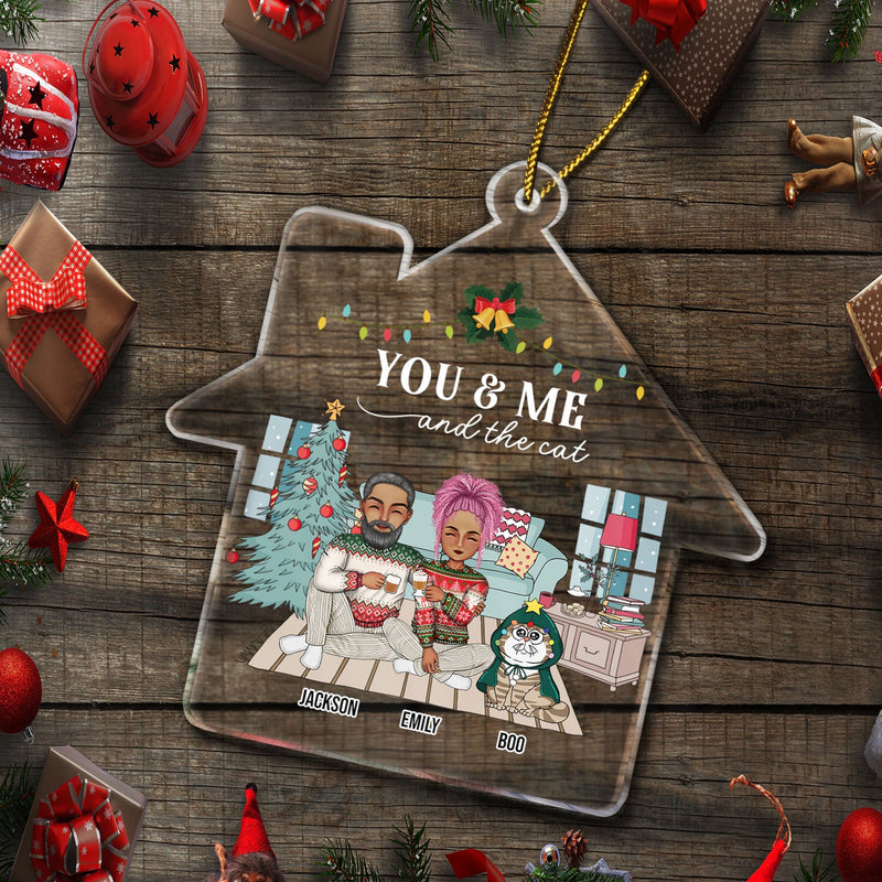 Couple You & Me And The Cats - Christmas Gift For Couples, Cat Lovers, Husband, Wife - Personalized Custom Shaped Acrylic Ornament