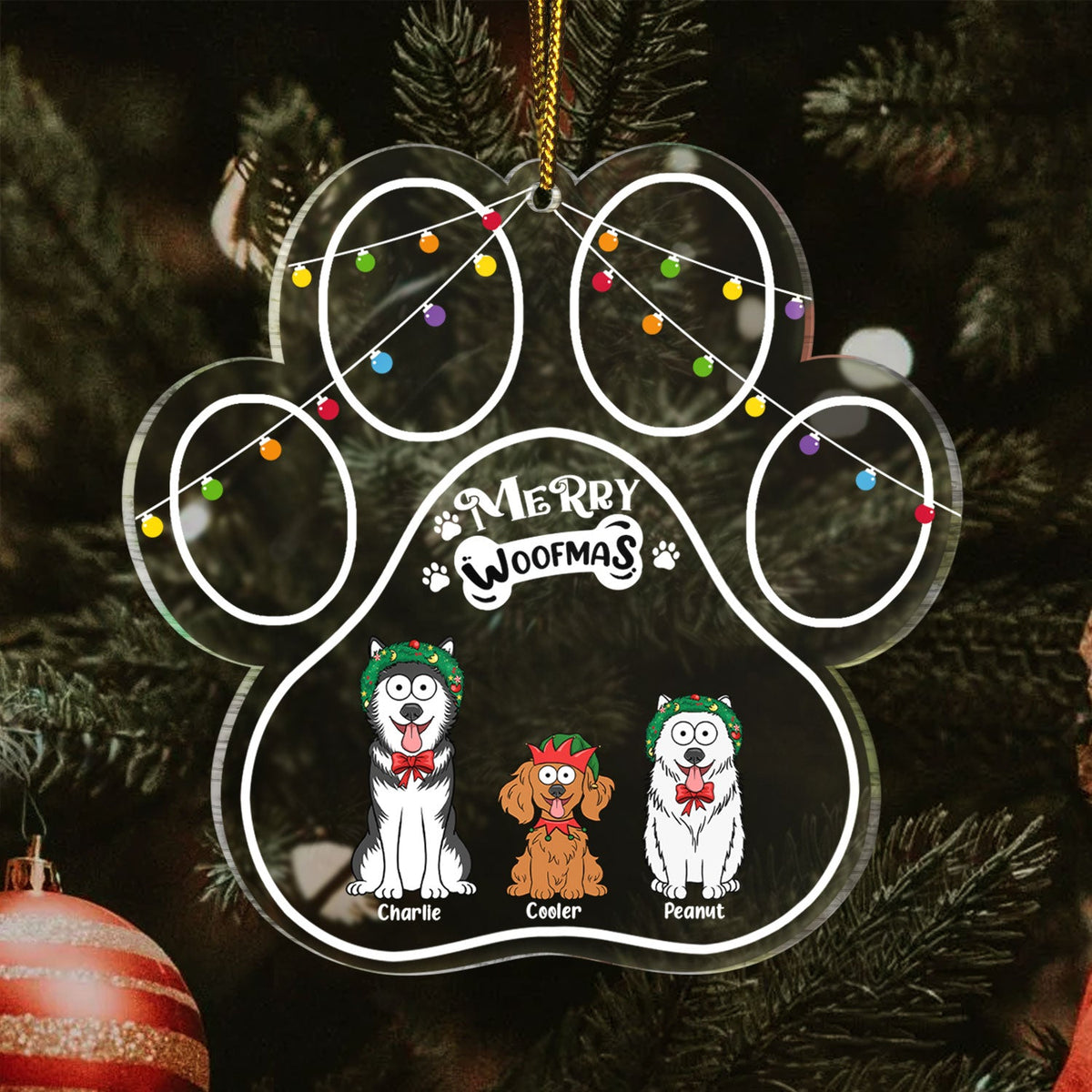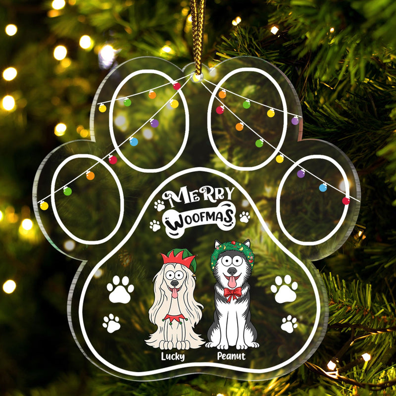 Paw Shape Merry Woofmas Funny Cartoon Dogs - Christmas Gift For Dog Lovers - Personalized Custom Shaped Acrylic Ornament