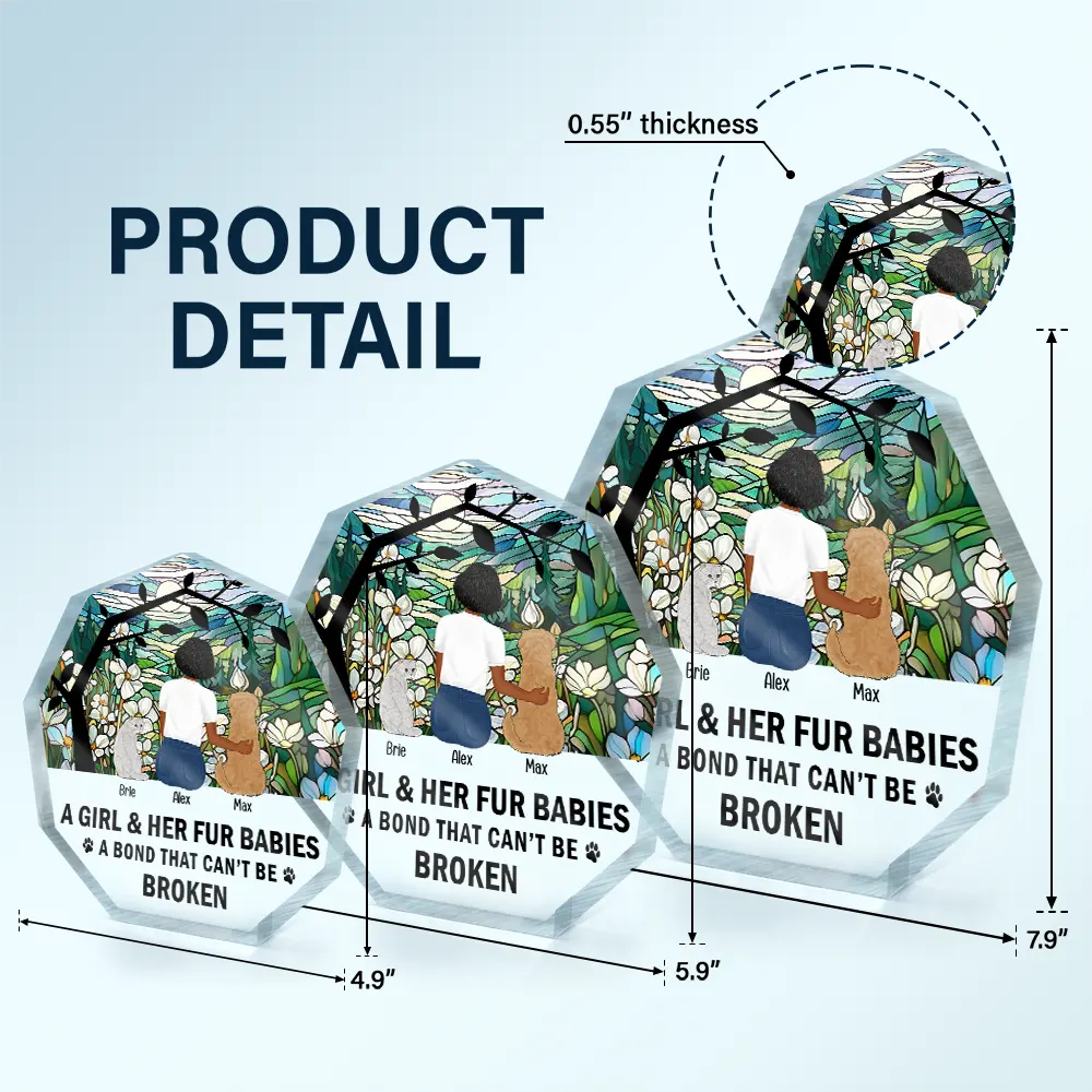 Celebrate the special bond with your furry friends through the Flower Field A Girl And Her Dog And Cat - Personalized Nonagon Shaped Acrylic Plaque. This beautiful piece serves as a heartfelt gift for pet lovers, pet moms, pet dads, cat lovers, cat moms, cat dads, dog dads, dog moms, and dog lovers on Mother's Day, Father's Day, Thanksgiving, Christmas, birthdays, and anniversaries.