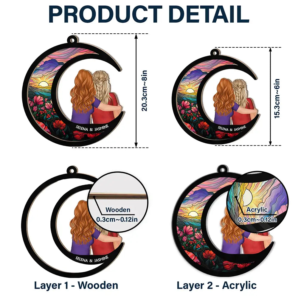 Sisters Besties Love You To The Moon - Personalized Window Hanging Suncatcher Ornament