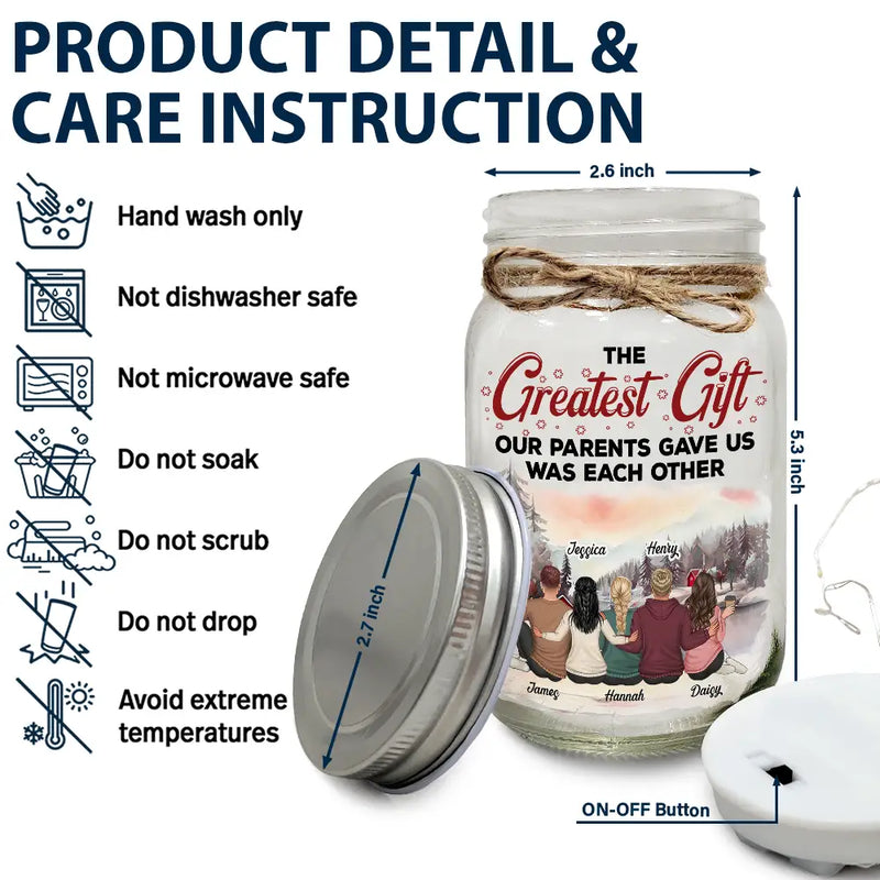 The Greatest Gift Our Parents Gave Us Was Each Other - Personalized Mason Jar Light