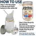 • Package: 01 Mason jar with lid x 01 light strings (Battery not included) x 01 special paper to make starlights x 01 coir rope.