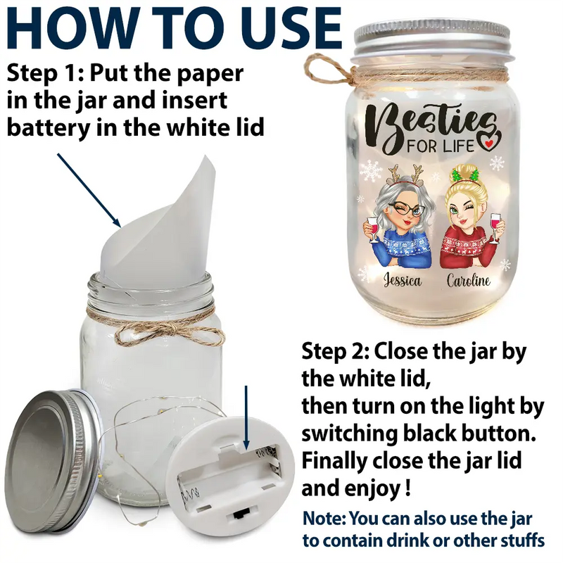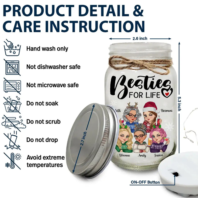 Illuminate your special bond with the "Turban Besties For Life Because Of You I Laugh A Little Harder - Personalized Mason Jar Light." This unique and funny mason jar light is the perfect gift for your bestie, sister, or sibling. Ideal for Christmas, Thanksgiving, birthdays, or anniversaries, it combines humor and personalization to create a memorable present.