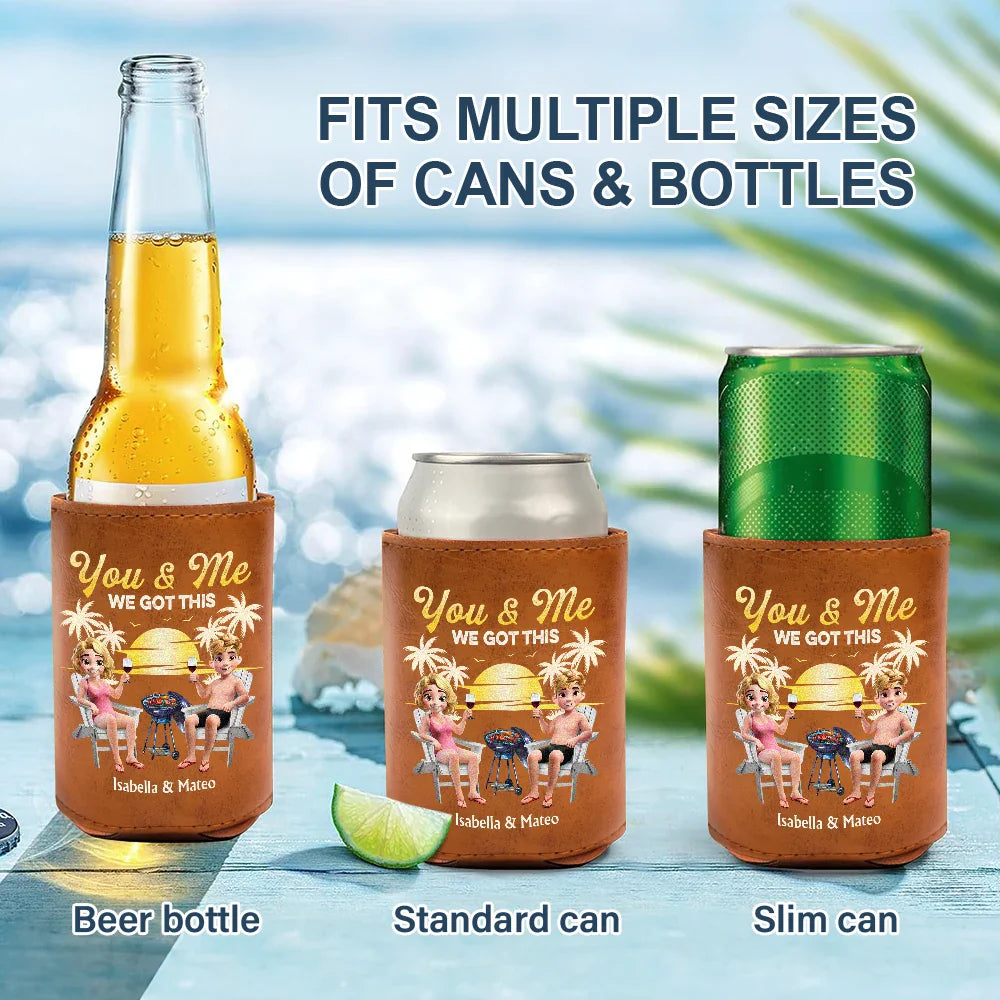 Husband And Wife Drinking Buddies For Life - Personalized Leather Can Cooler