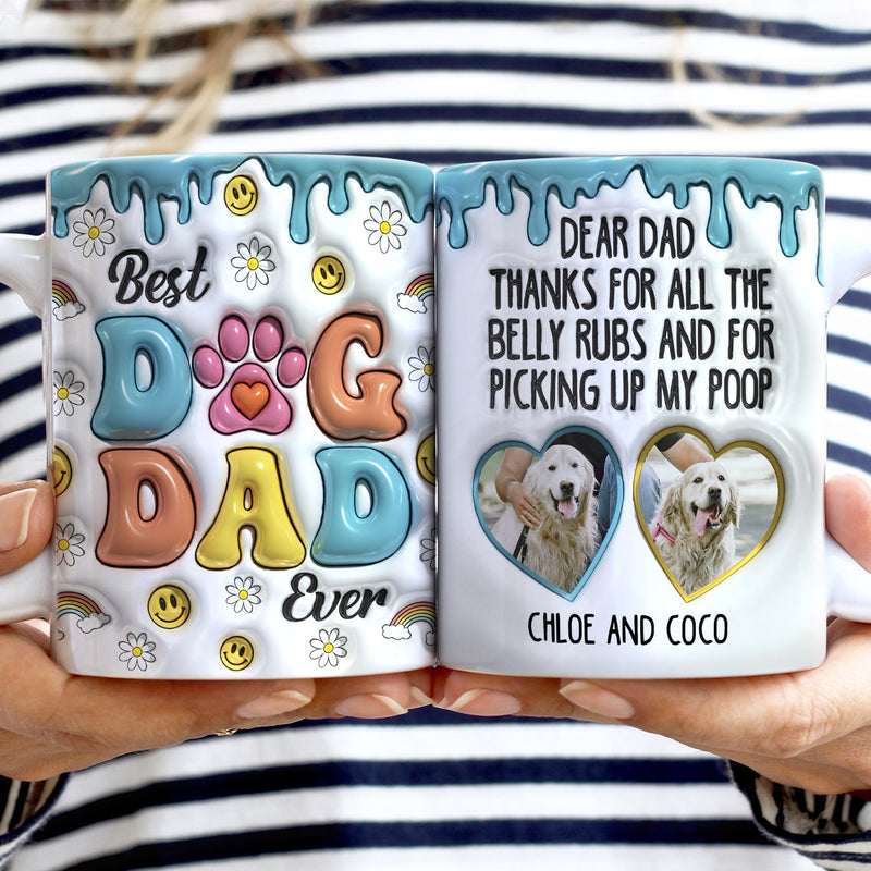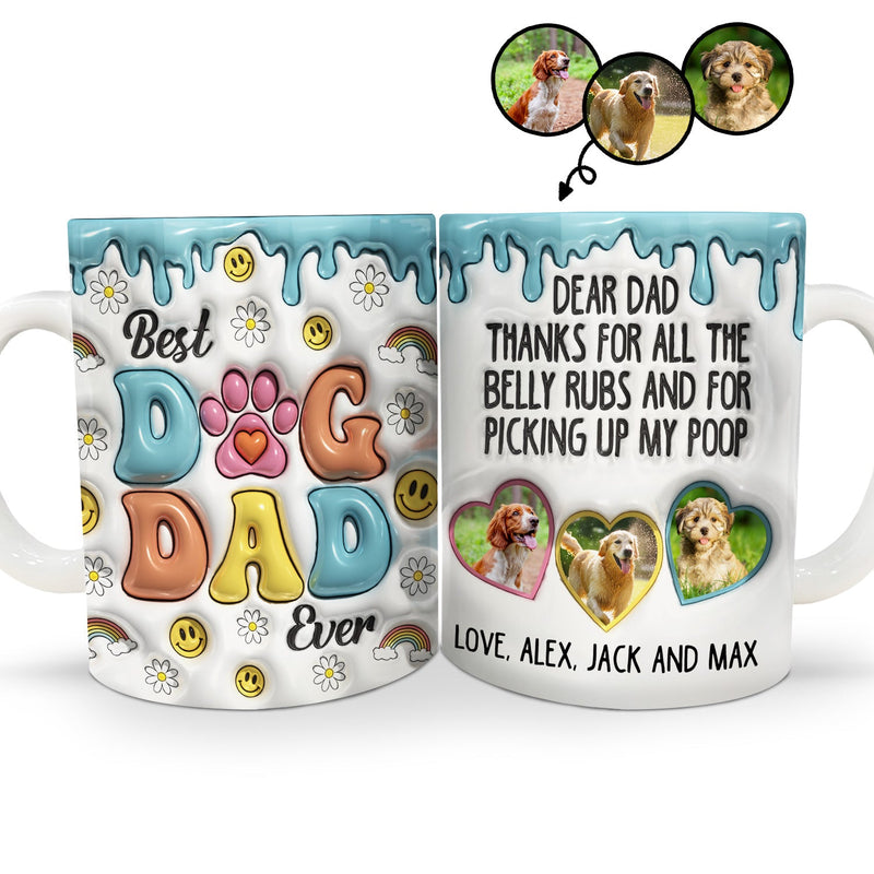 Custom Photo Thanks For All The Belly Rubs - Gift For Dog Dad, Dog Lovers - 3D Inflated Effect Printed Mug, Personalized White Edge-to-Edge Mug
