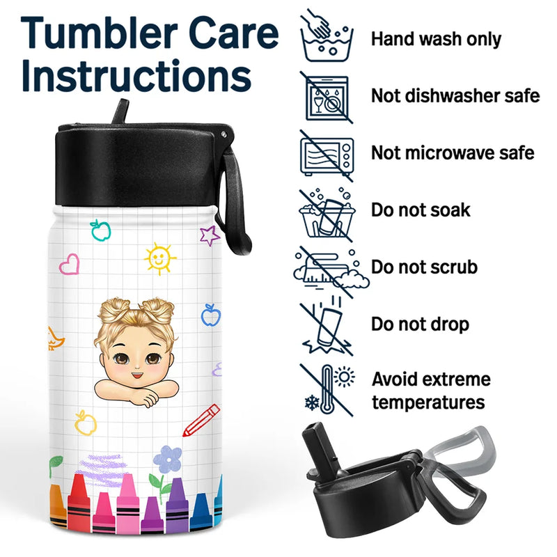 Designed with a custom kid appearance, this delightful water bottle is ideal for back-to-school, graduations, birthdays, or anniversaries. Whether it's for your daughter, son, or niece, they will feel appreciated and proud to carry a water bottle that features their own likeness.