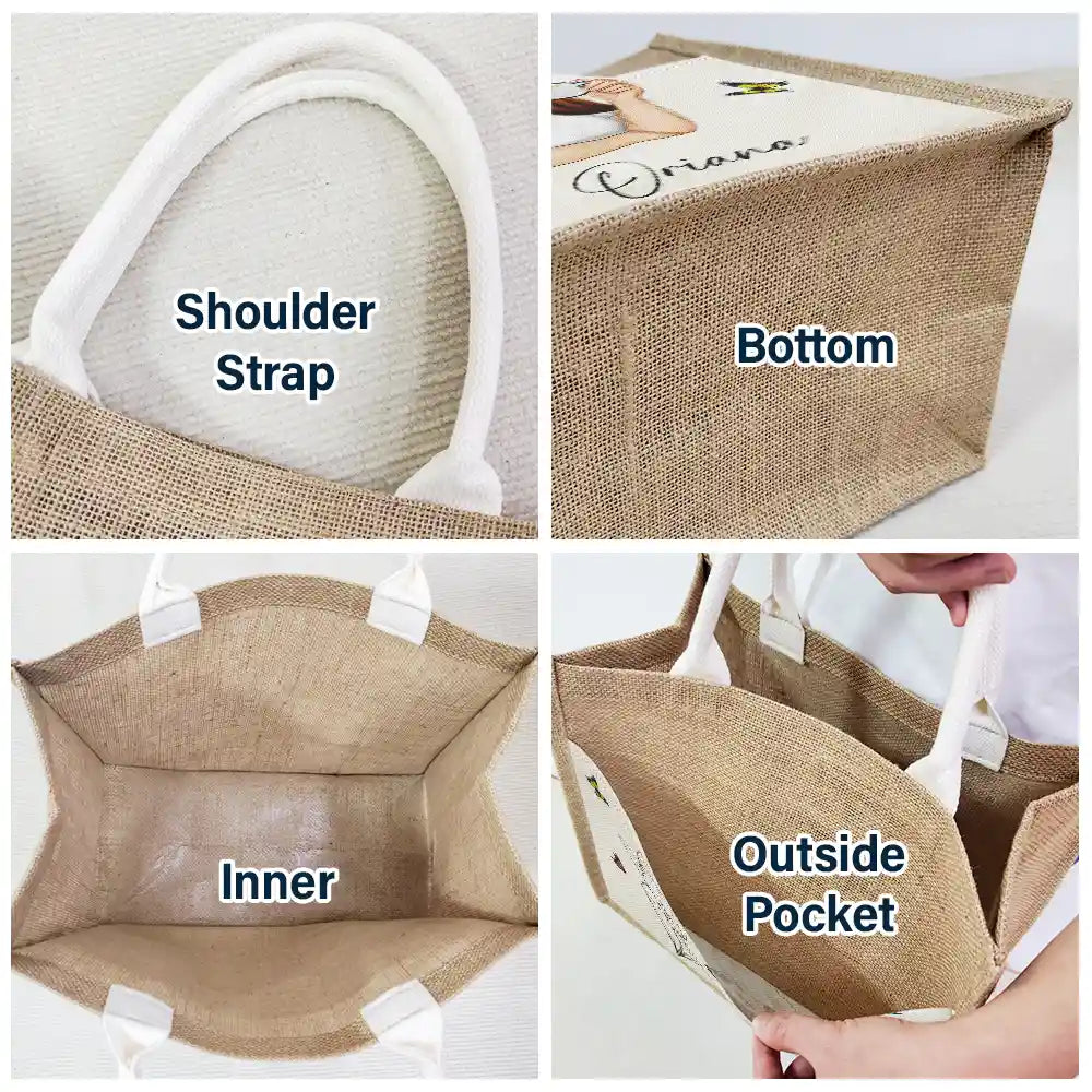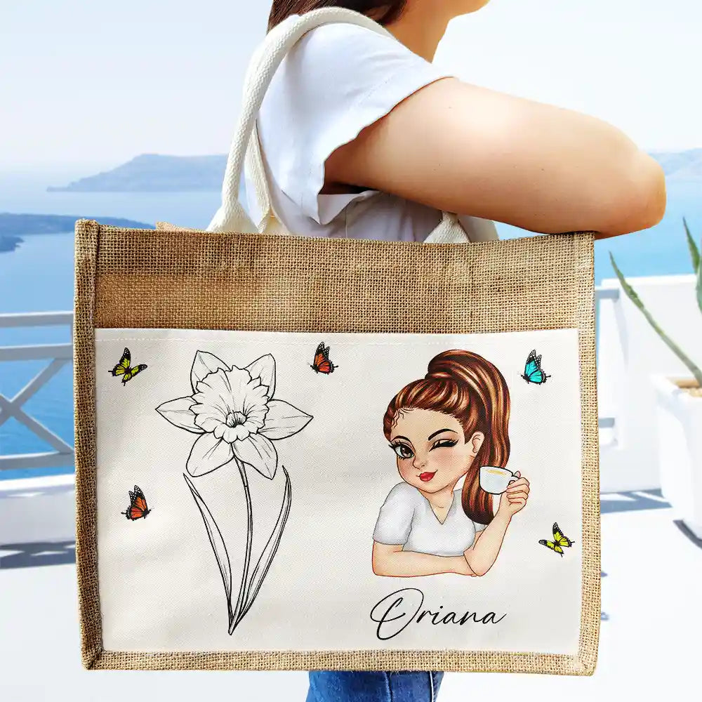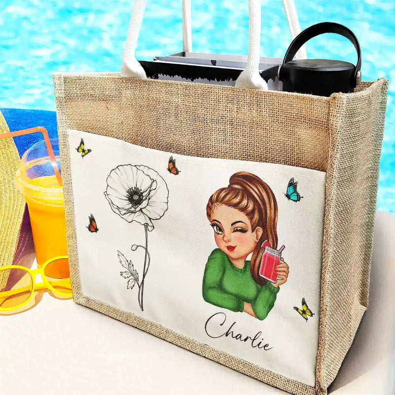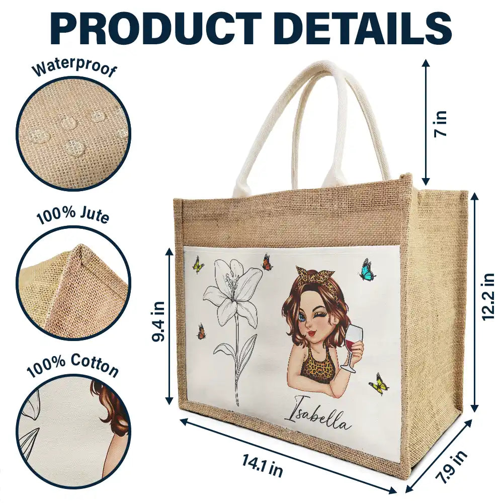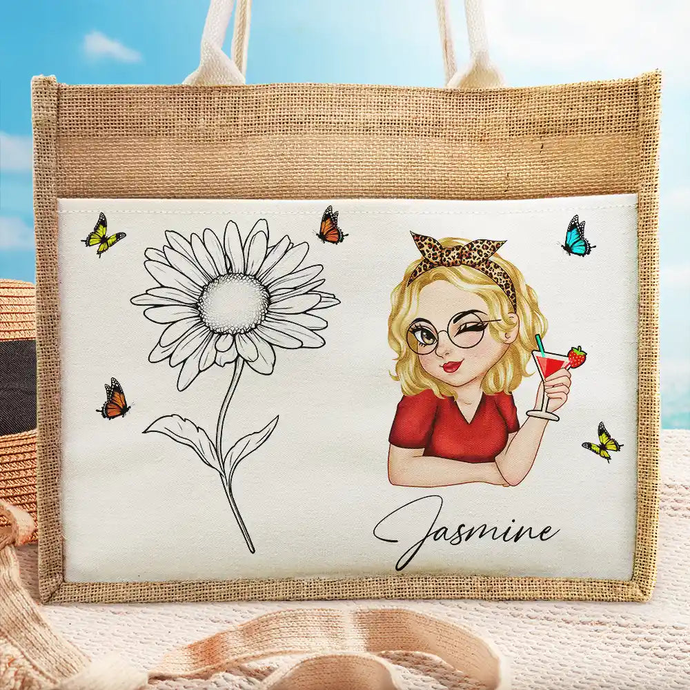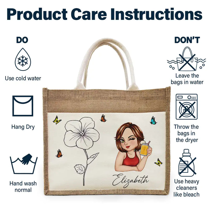 Line Wild Flower Cartoon Woman - Personalized Jute Tote Bag