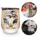 Let's Sit By The Campfire Husband Wife Camping - Couple Gift - Personalized Custom Wine Tumbler