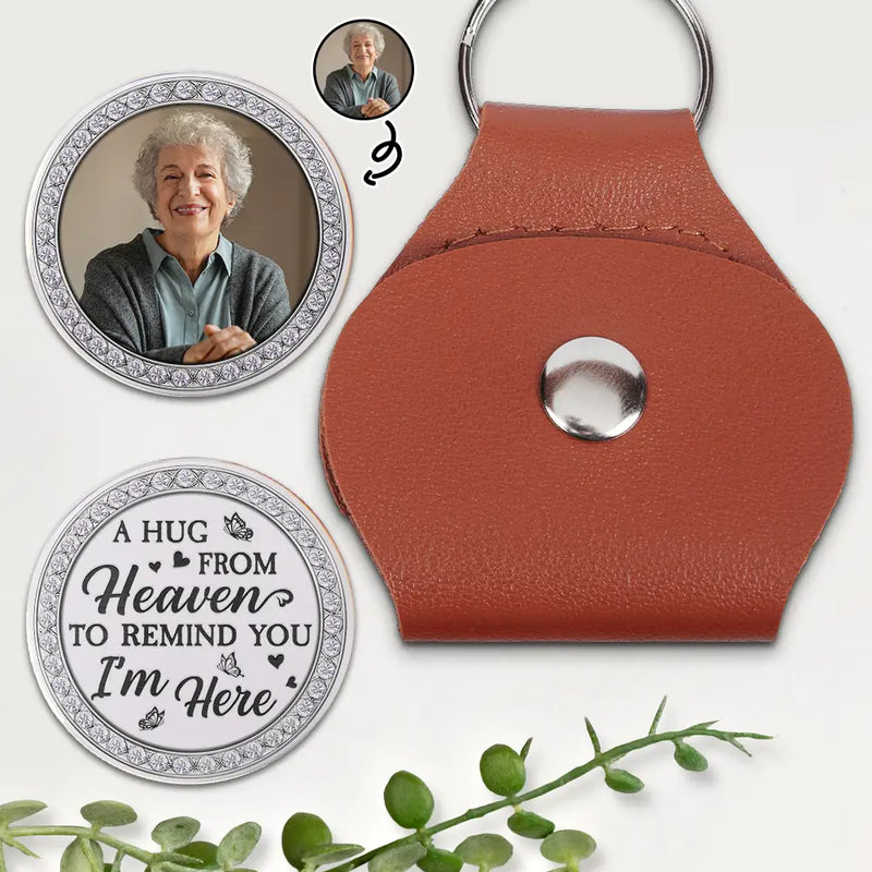 Custom Photo A Hug From Heaven Printed Gemstone Art - Personalized Leather Pocket Hug