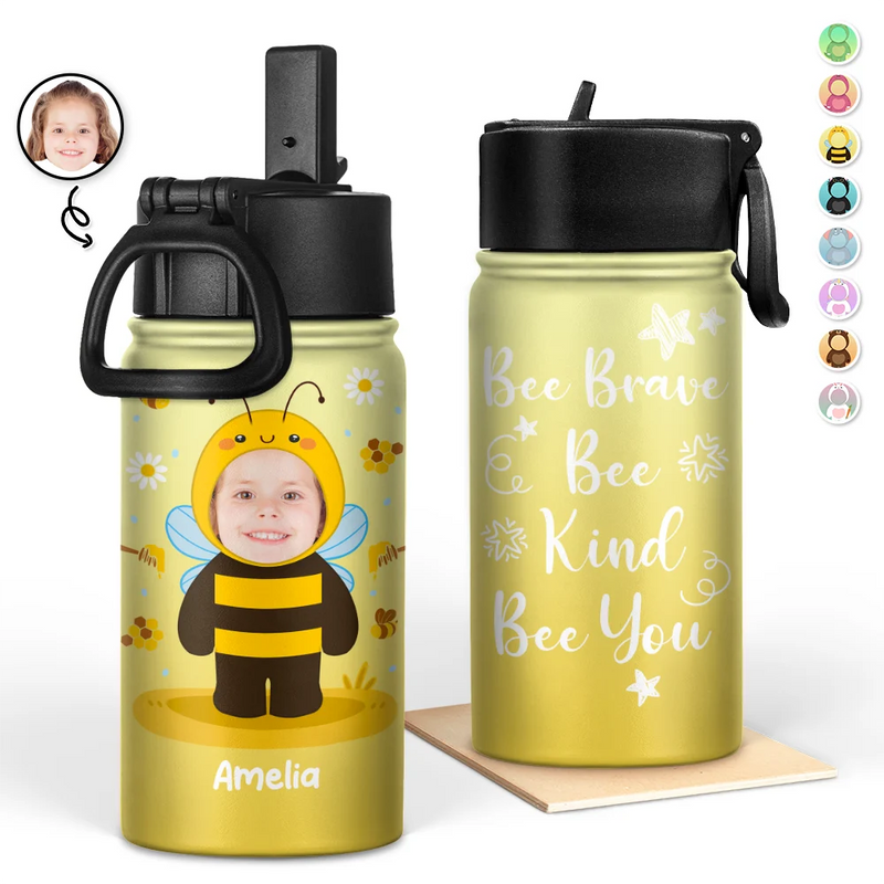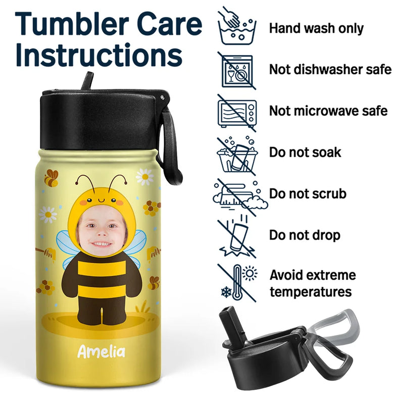 Custom Photo Cute Kid Cosplay Animal - Personalized Kids Water Bottle