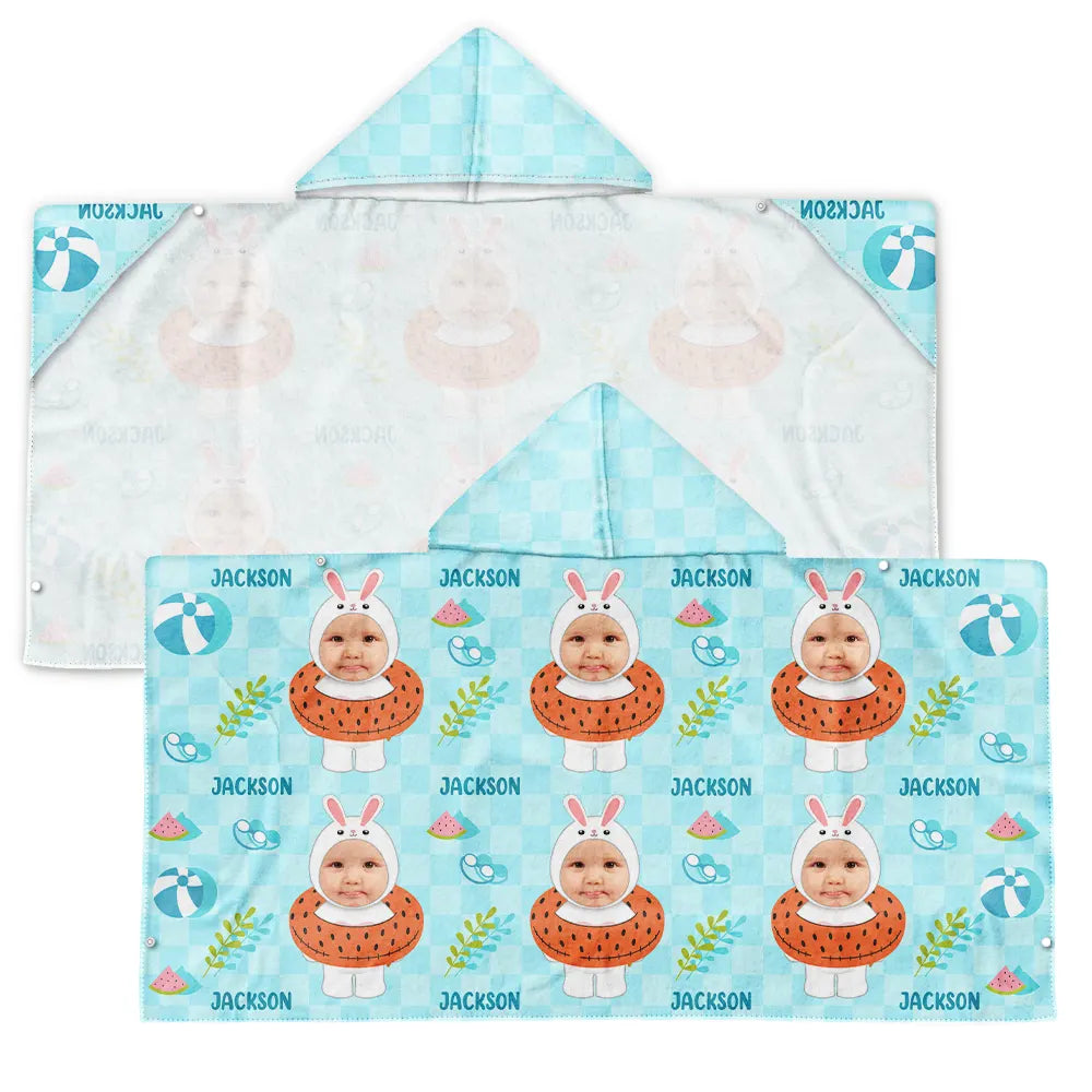 Custom Photo Summer Fun Kid's Animal Cosplay With Float Ring - Personalized Hooded Beach Towel