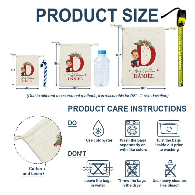 Monogram Merry Christmas Flat Art Family - Personalized Favor Bag