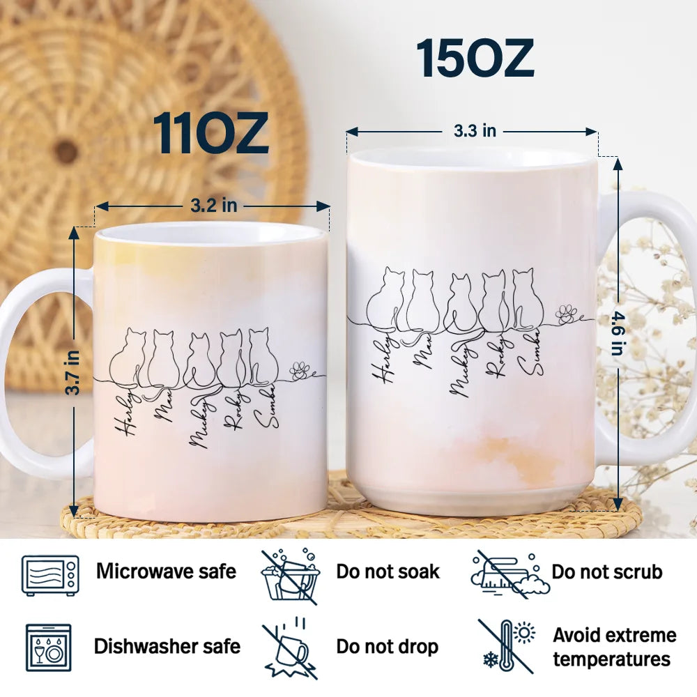 Adorable Cat Line - Personalized White Edge-to-Edge Mug