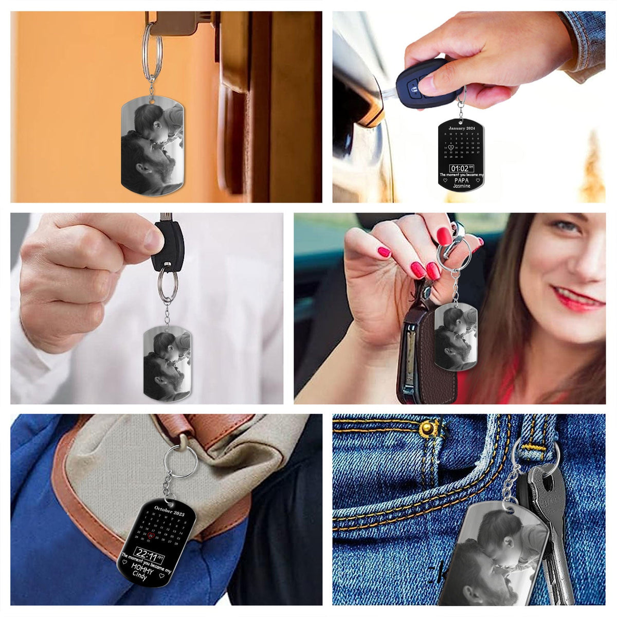 Custom Photo Calendar Black The Moment You Became My Daddy - Gift For Father - Personalized Aluminum Keychain