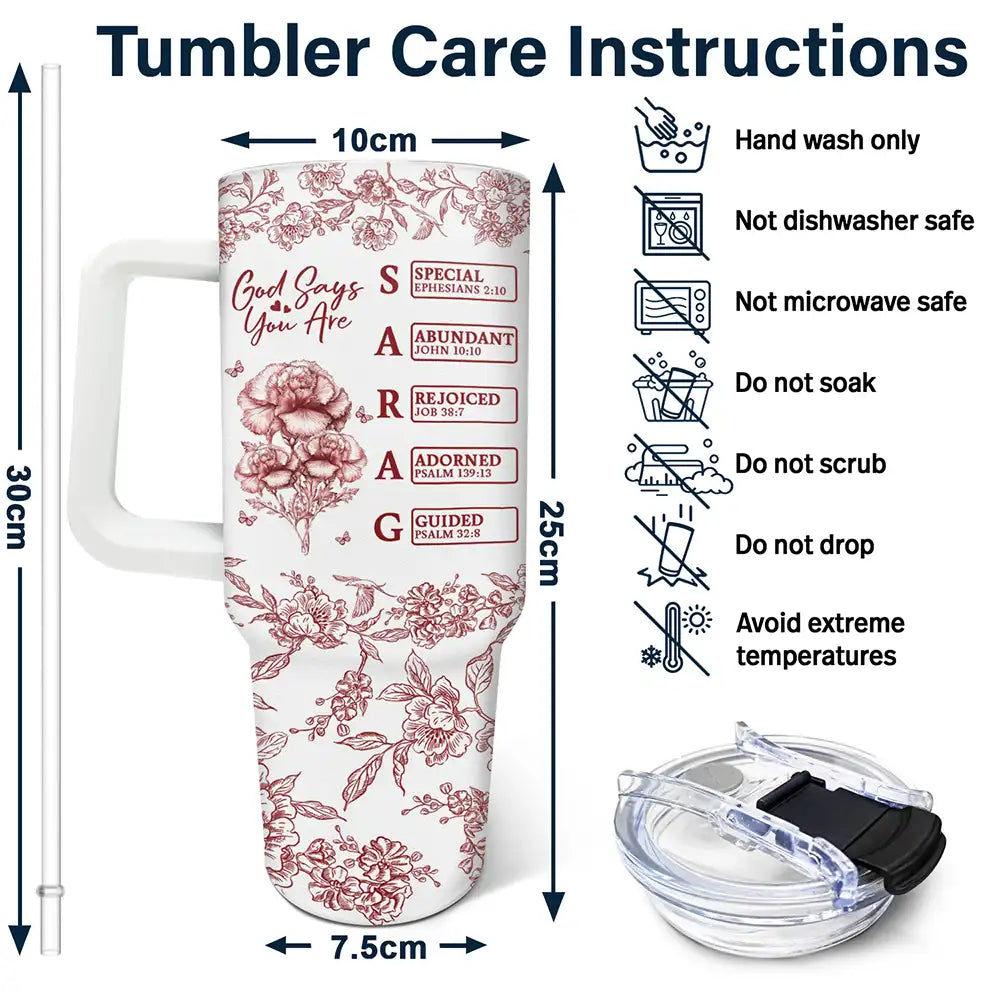 God Says I Am Toile De Jouy Flower - Personalized 40oz Tumbler With Straw