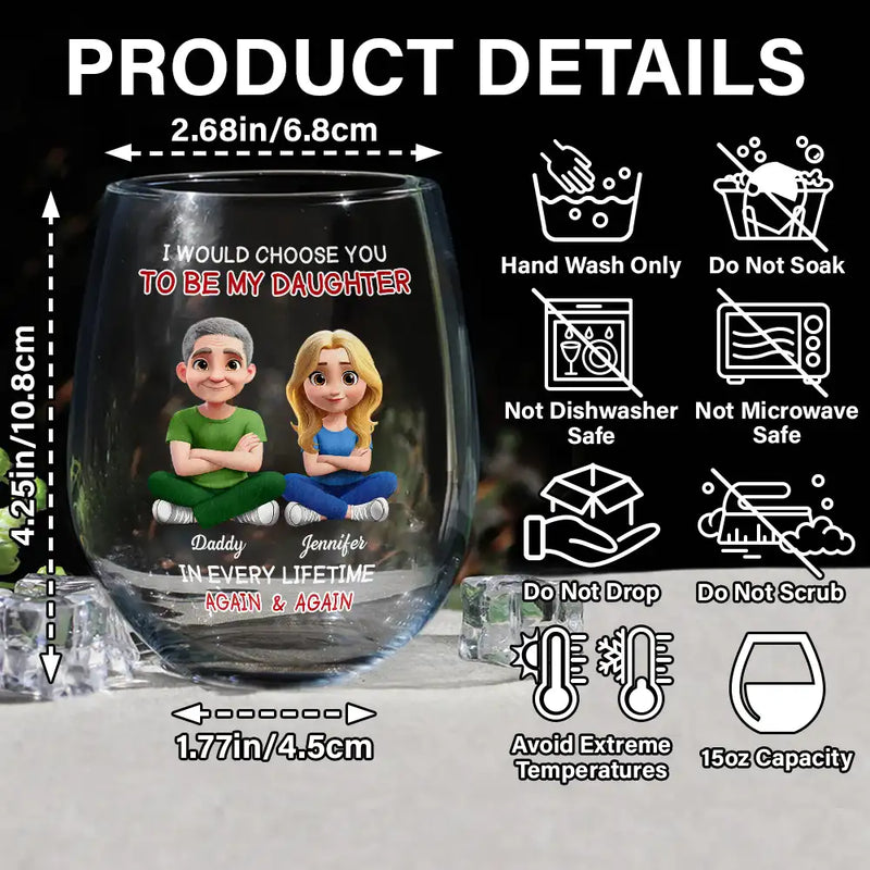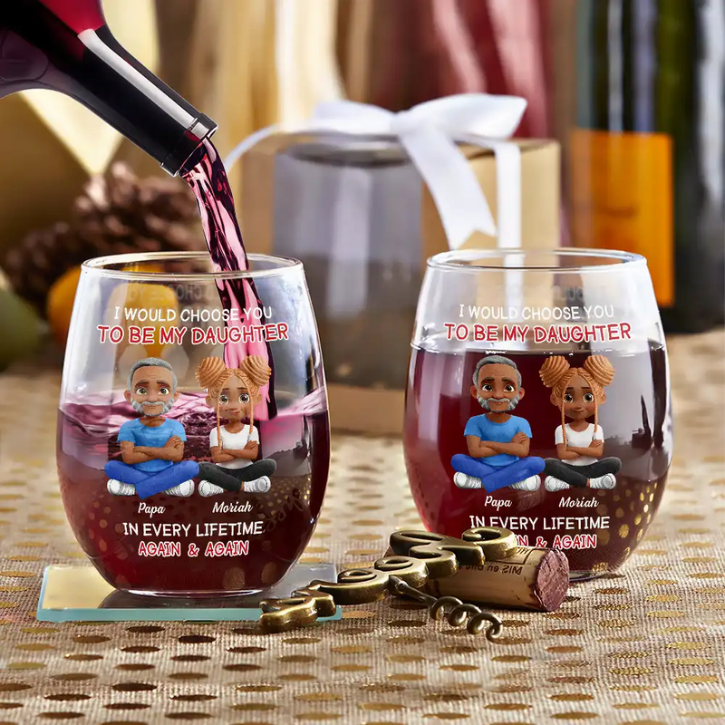 I Would Choose To Be My Daughter In Every Lifetime - Personalized Stemless Wine Glass