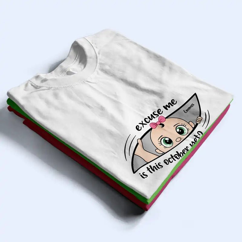 Excuse Me Is It Time Yet Pregnancy Announcement Expecting Mom Maternity - Personalized T Shirt