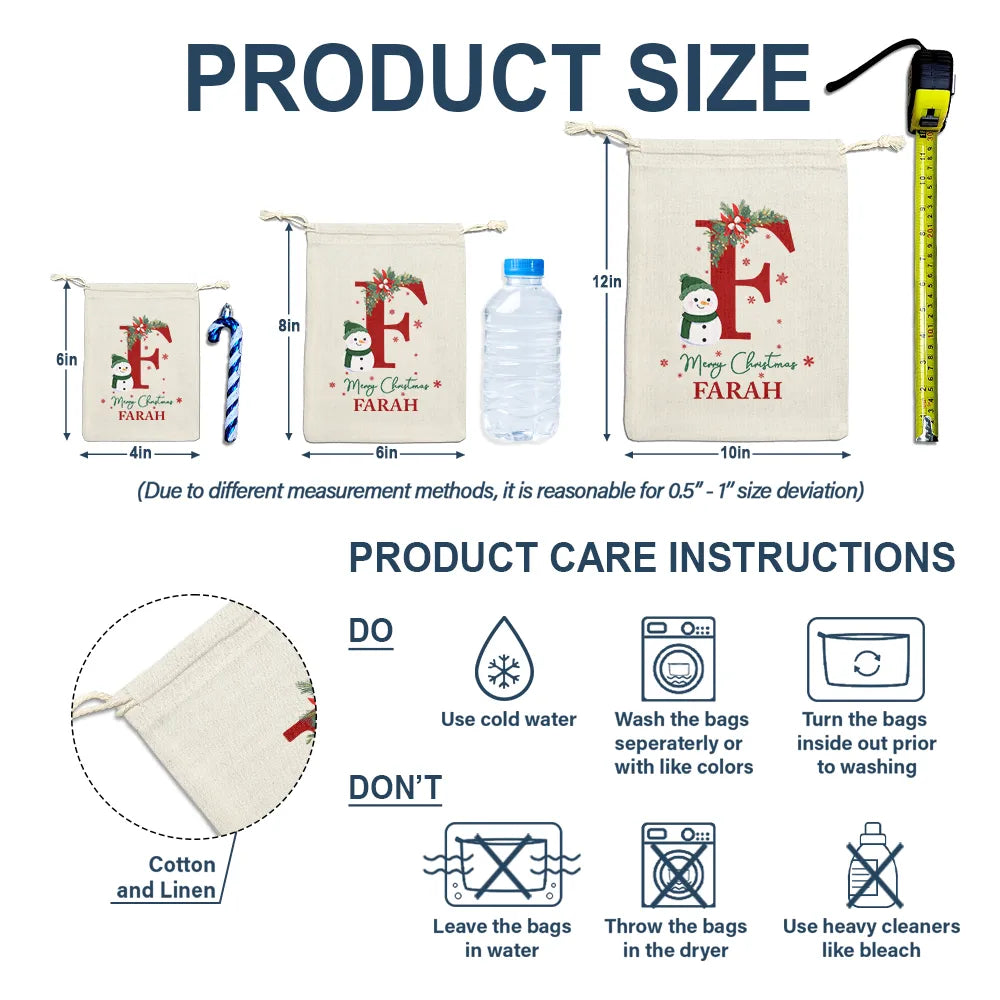 Monogram Snowman Merry Christmas - Personalized Favor Bag