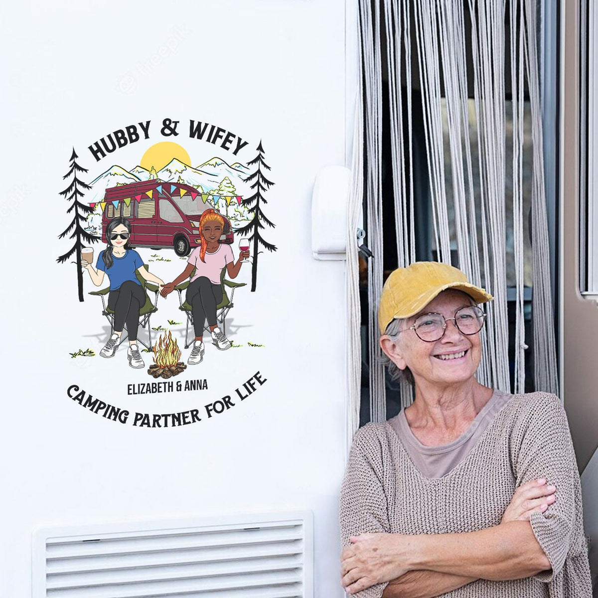 Hubby & Wifey Camping Partners For Life - Gift For Couples, Camping Lovers - Personalized Camping Decal, Decor Decal