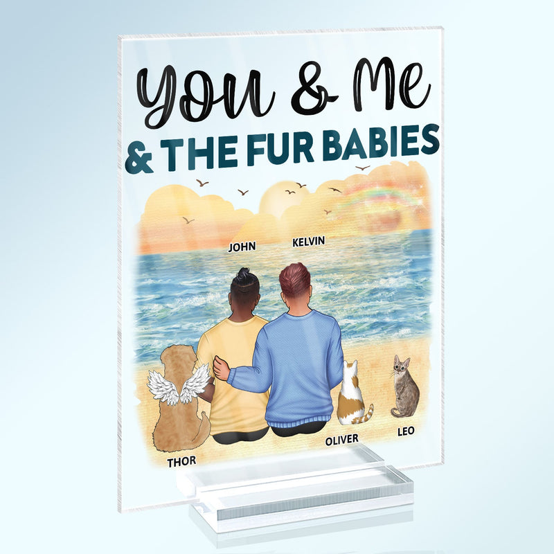 You & Me And The Fur Babies - Gift For Couples, Dog Lovers, Cat Lovers, Dog Mom, Dog Dad - Personalized Vertical Rectangle Acrylic Plaque