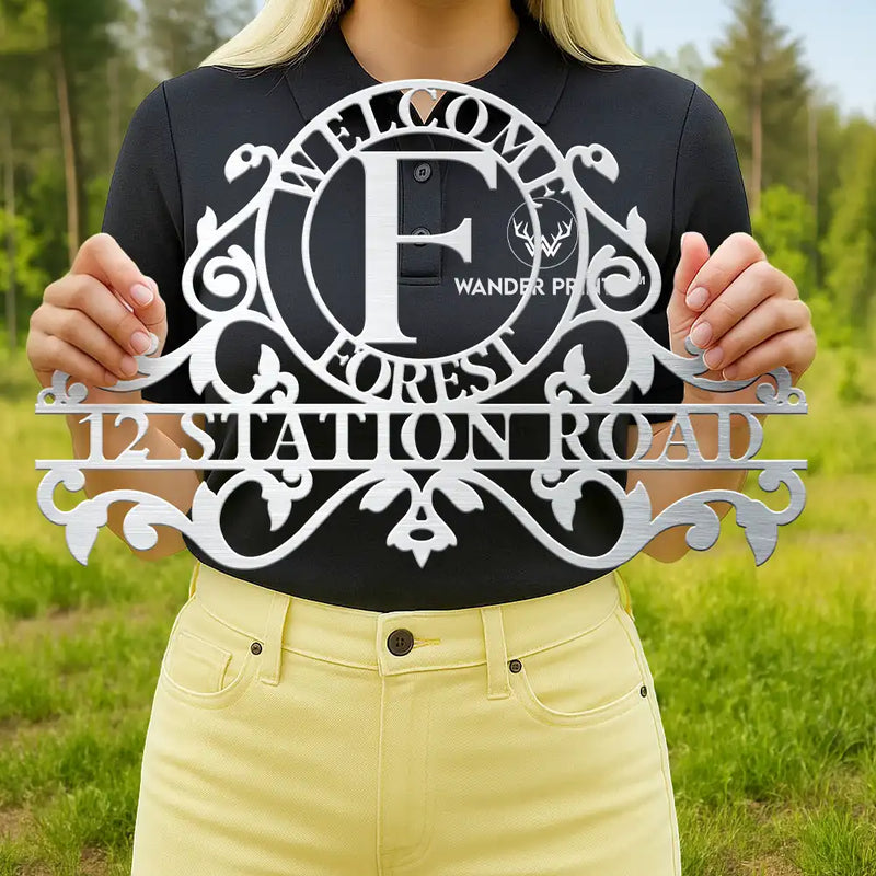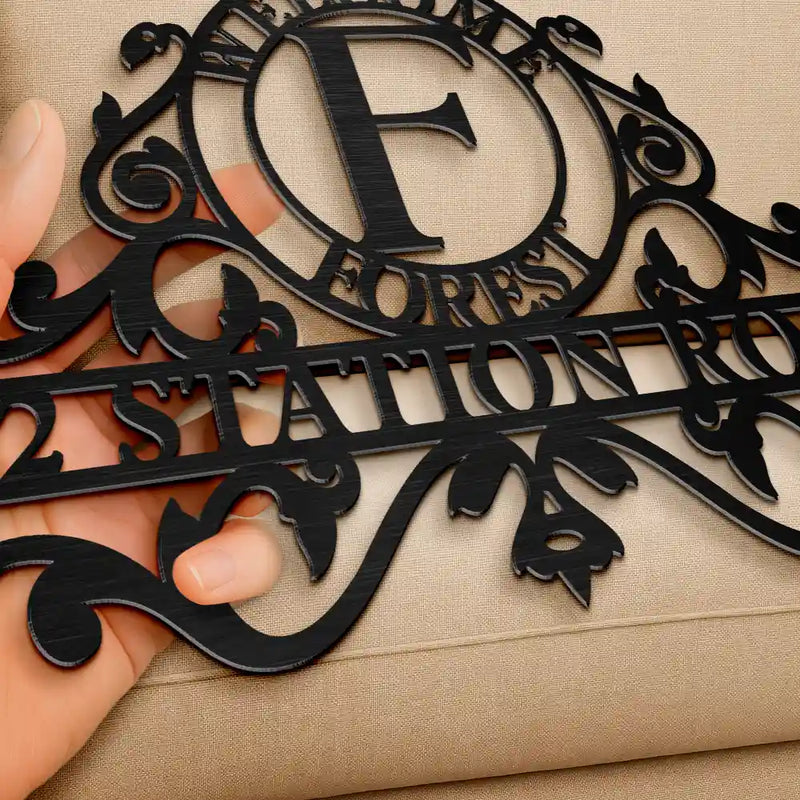 Welcome Family Name Monogram - Personalized Cutout Metal Sign