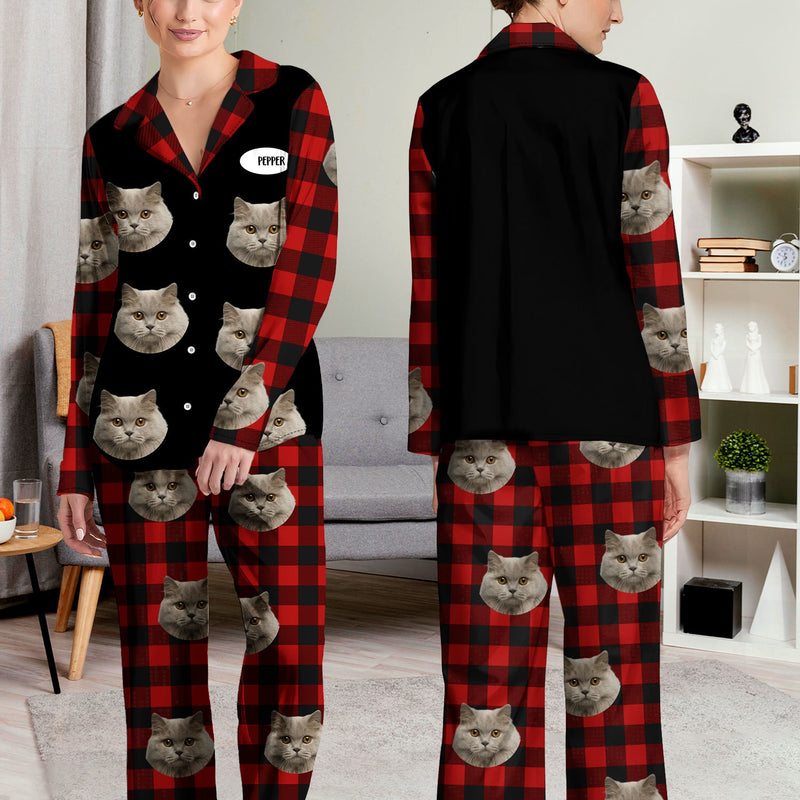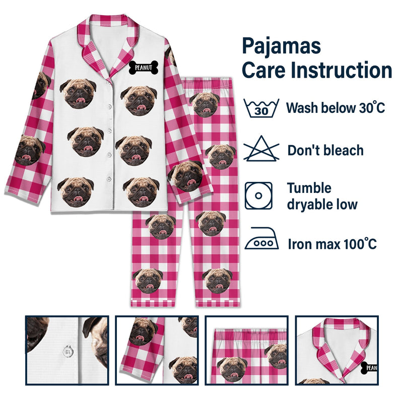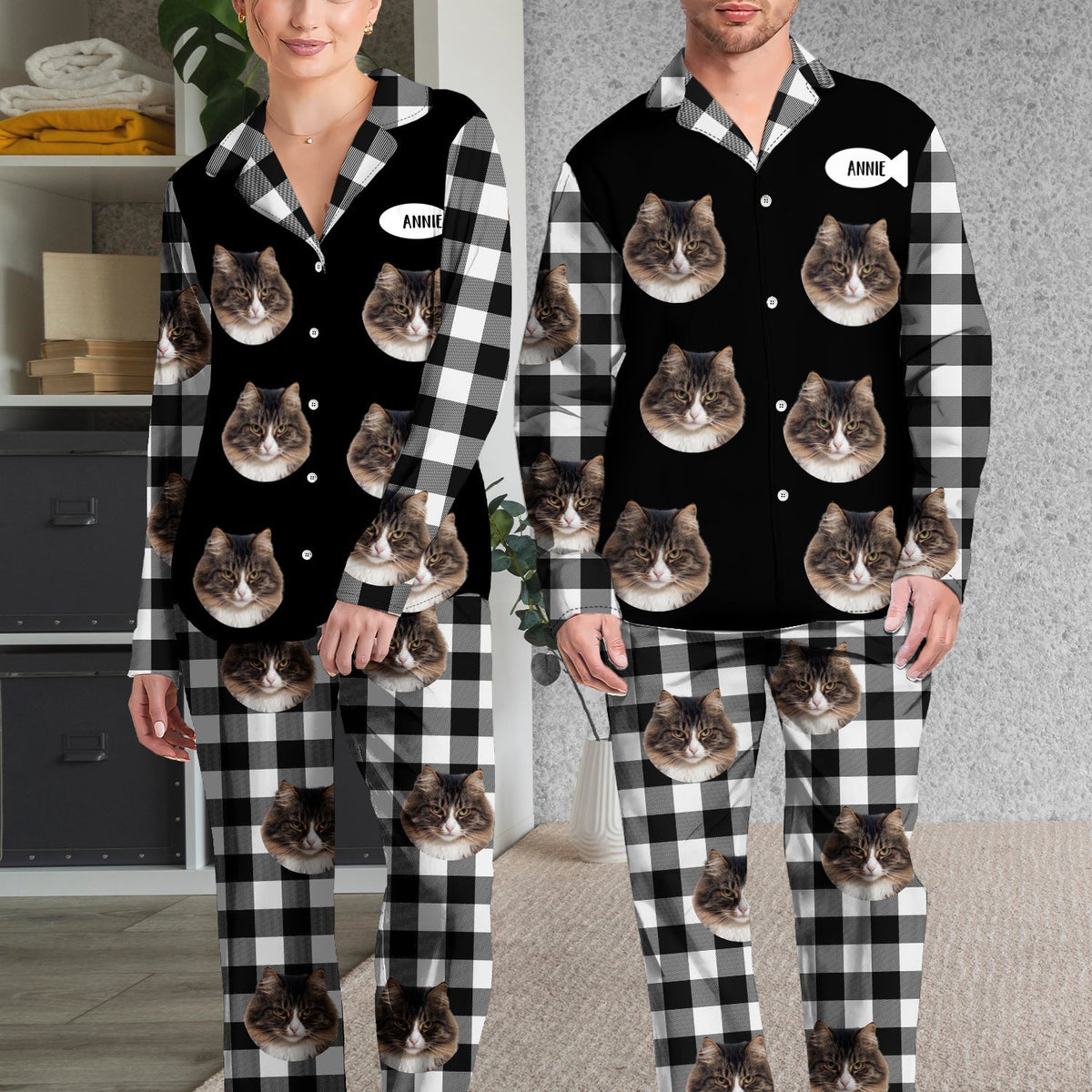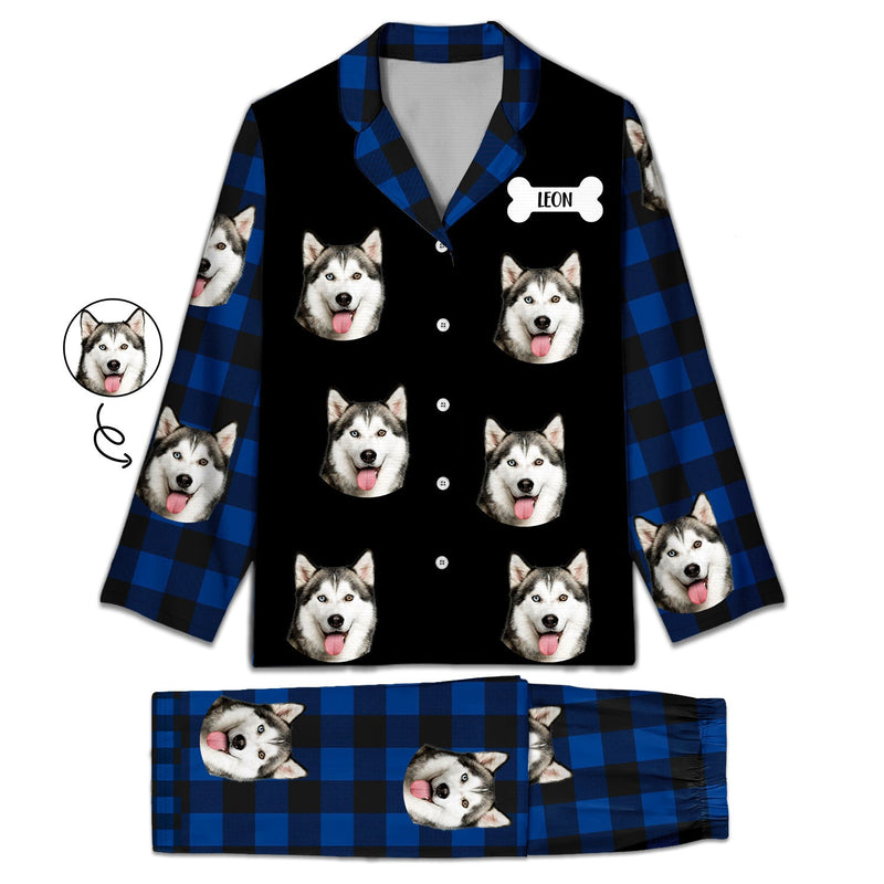 Custom Photo Family Dog Cat Face - Gift For Pet Lovers, Family Members - Personalized Long Pajamas Set
