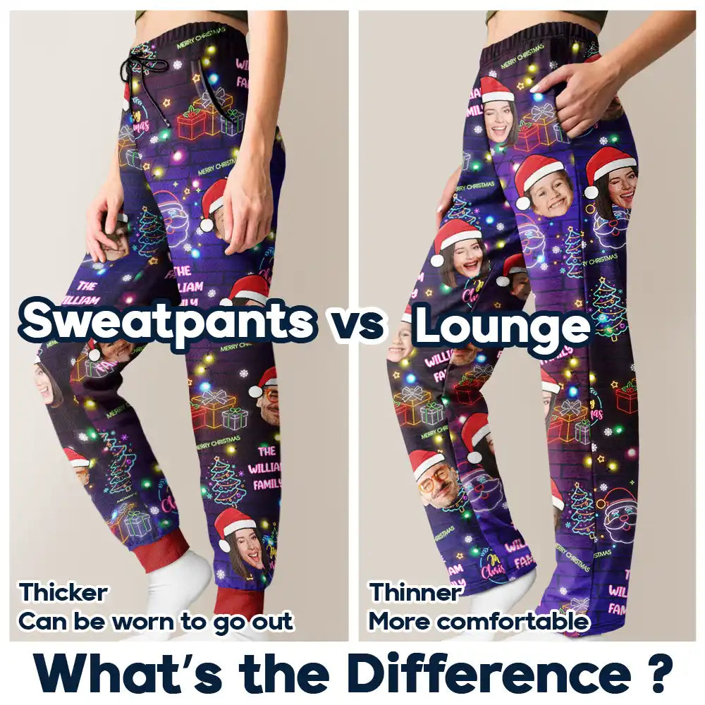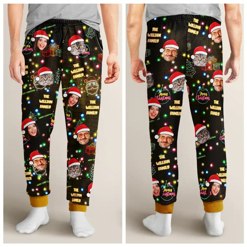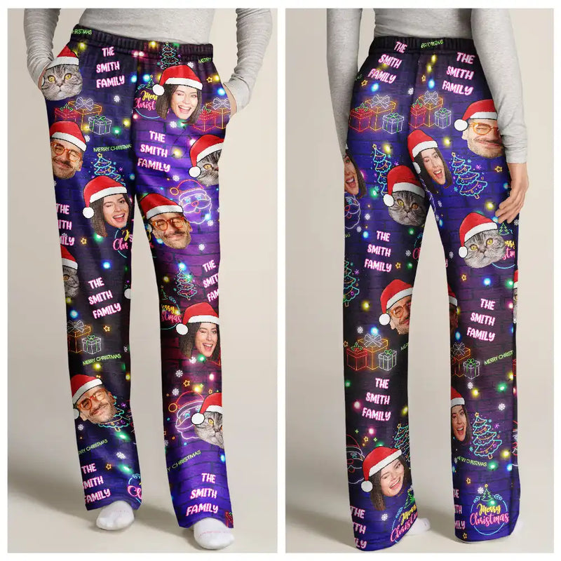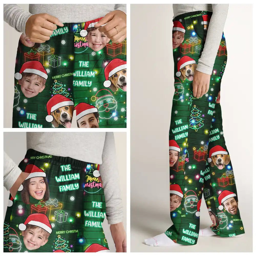 Custom Photo Funny Family Pet Face Neon Light Style - Personalized Pajama Pants