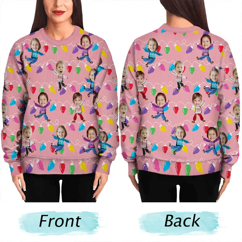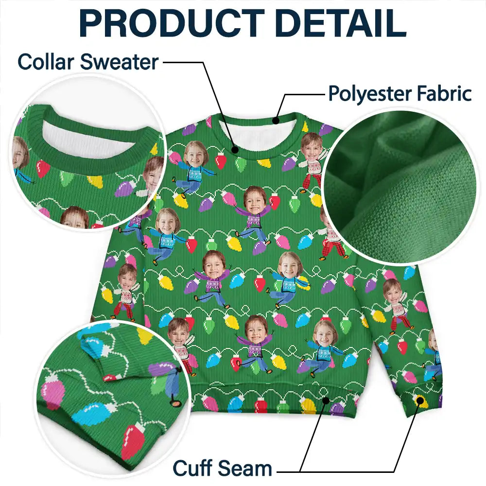 Custom Photo Funny Kids Christmas Light - Personalized Unisex Ugly Sweater