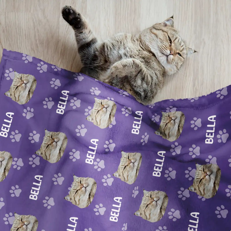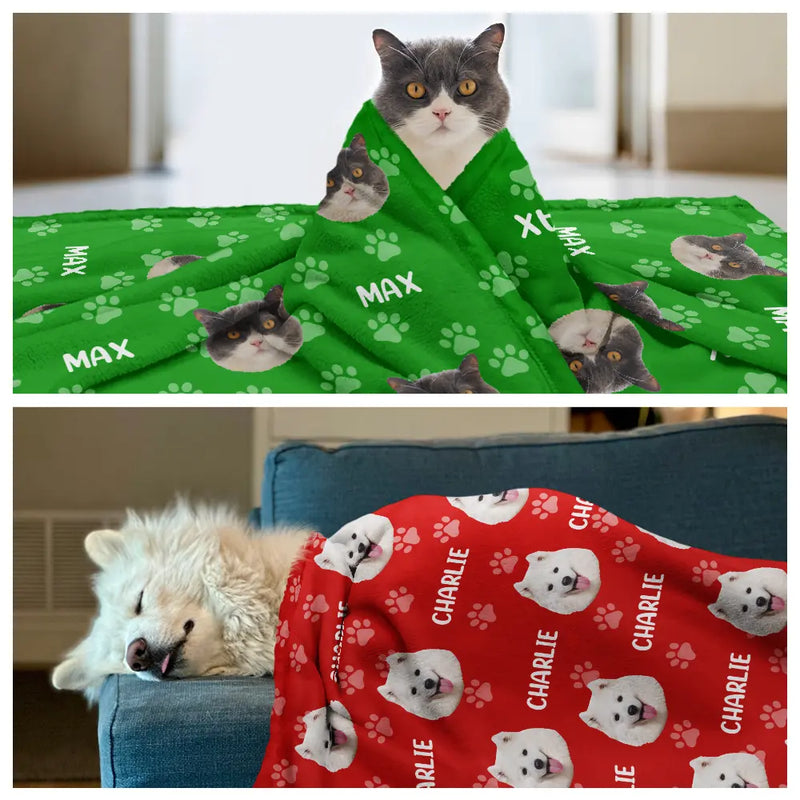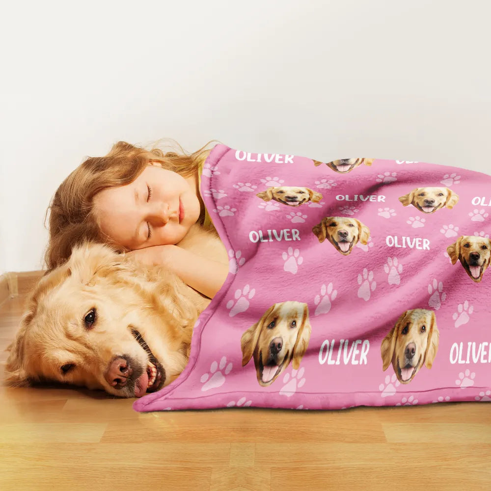 Custom Photo Pet Face Pattern Dog Cat Family - Personalized Pet Blanket