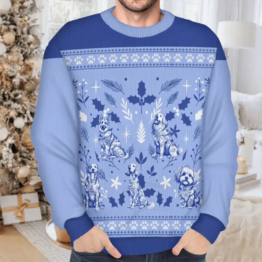 Chinoiserie Toile De Jouy Dog - Personalized Unisex Ugly Sweater