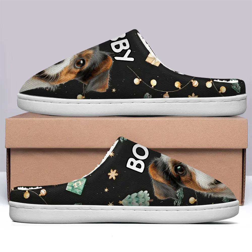 Custom Photo Pet Face Christmas Theme - Personalized Fluffy Slippers