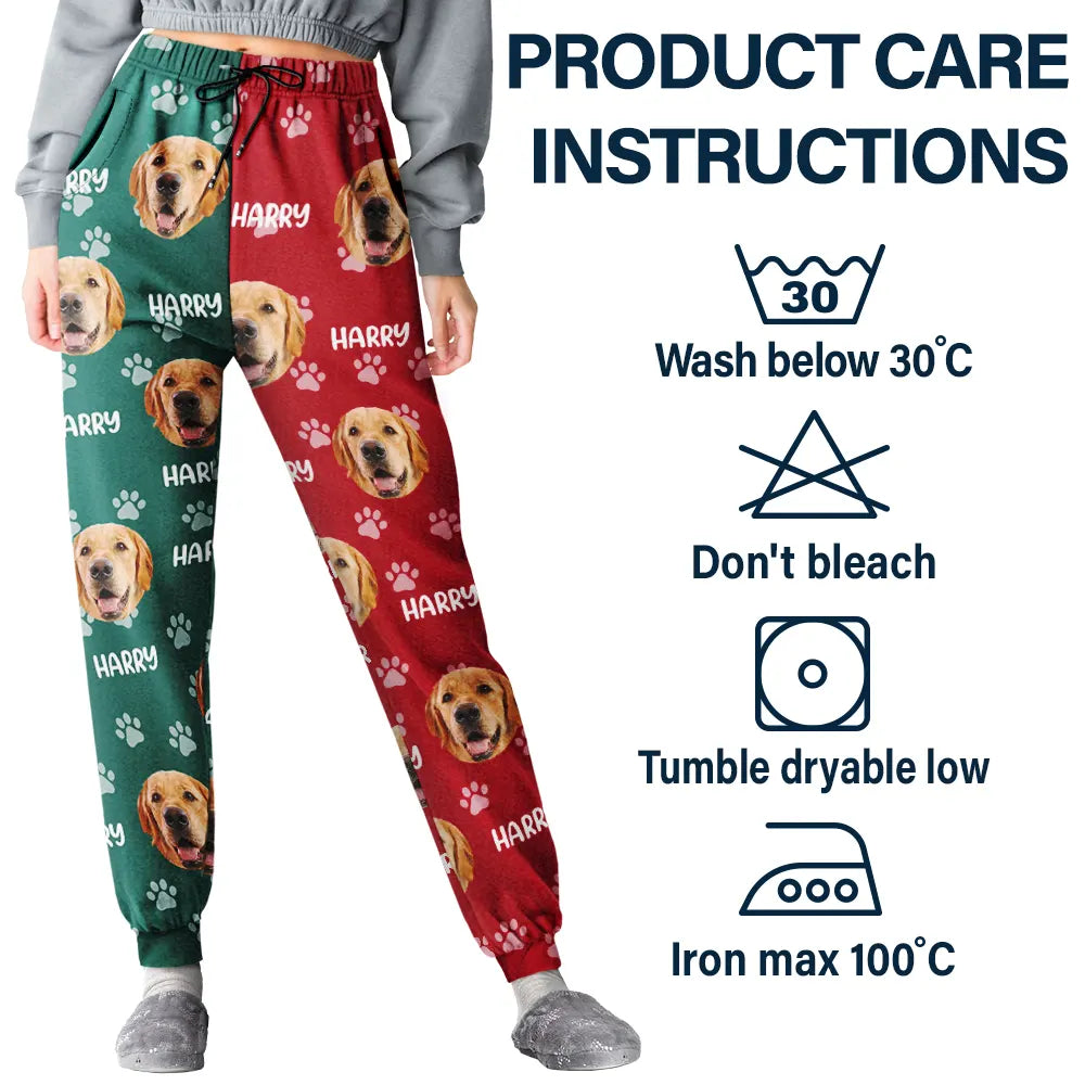 Custom Photo Red Green Pet Face - Personalized Pajama Pants
