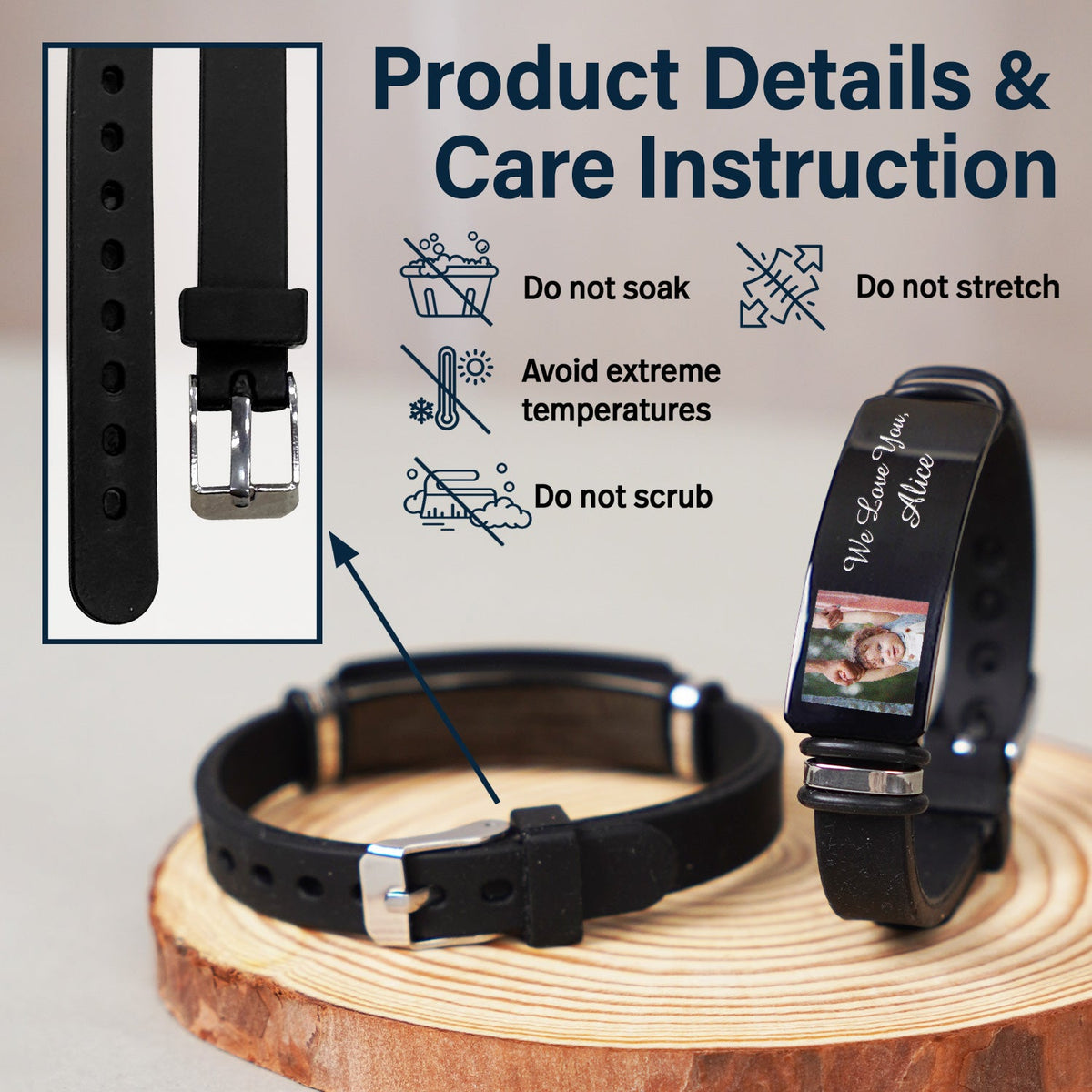 • Best technique - Printing photos and engraving quotes with silver color makes the surface sharp and detailed. Sturdy clasp design.