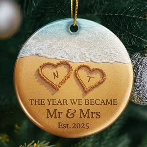 The Year We Became Mr & Mrs Initial Letter - Personalized Circle Ceramic Ornament