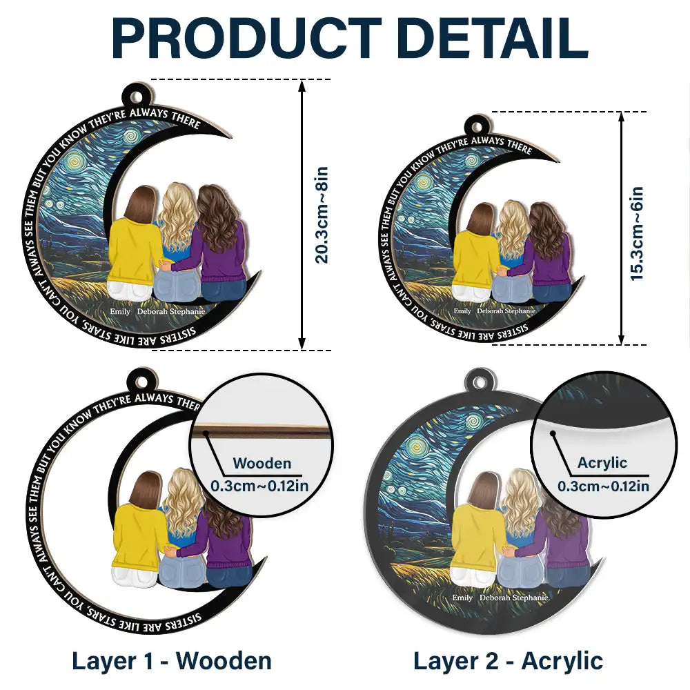 Besties Sisters Are Like Stars Flowers In The Same Garden - Personalized Window Hanging Suncatcher Ornament
