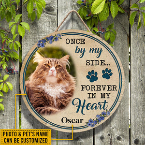 Custom Photo Cat Dog Once By My Side Photo Gift Pet Memorial Gift Custom Wood Circle Sign, Pet Loss Gifts, Sympathy, Pet Memorial Gift, Cat Loss, Dog Loss, Pet Sympathy