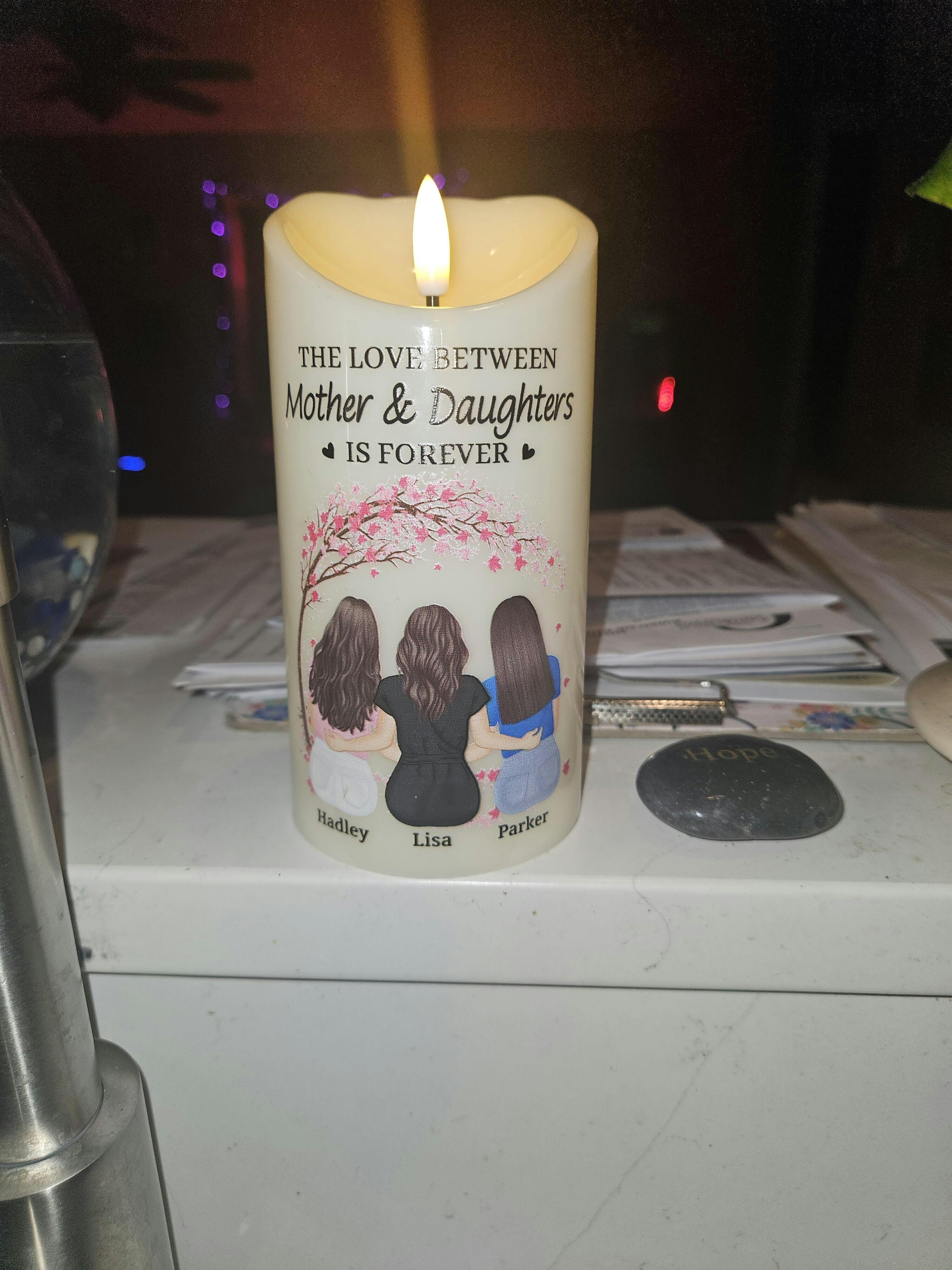 Just love this personalized candle. It lights up so bright and the picture can be seen by both sides.